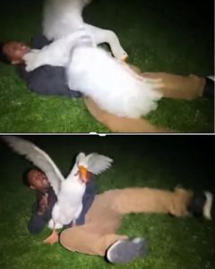 A man tried to steal a goose but was attacked and “subdued” by the goose before the police arrived.